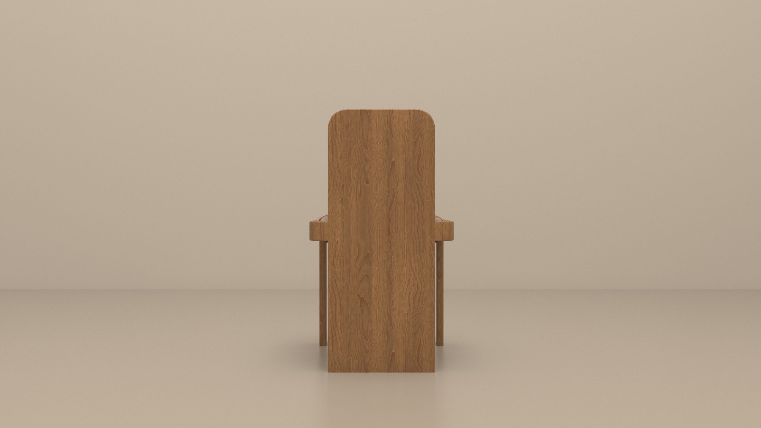 TOTEM 02 : structure en bois laqué Chocolat, assise et dossier tapissés mousse haute densité et drap de laine chiné coordonné.
