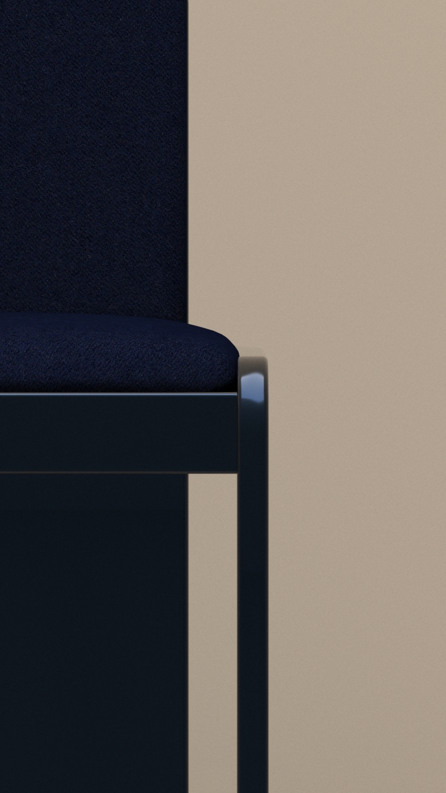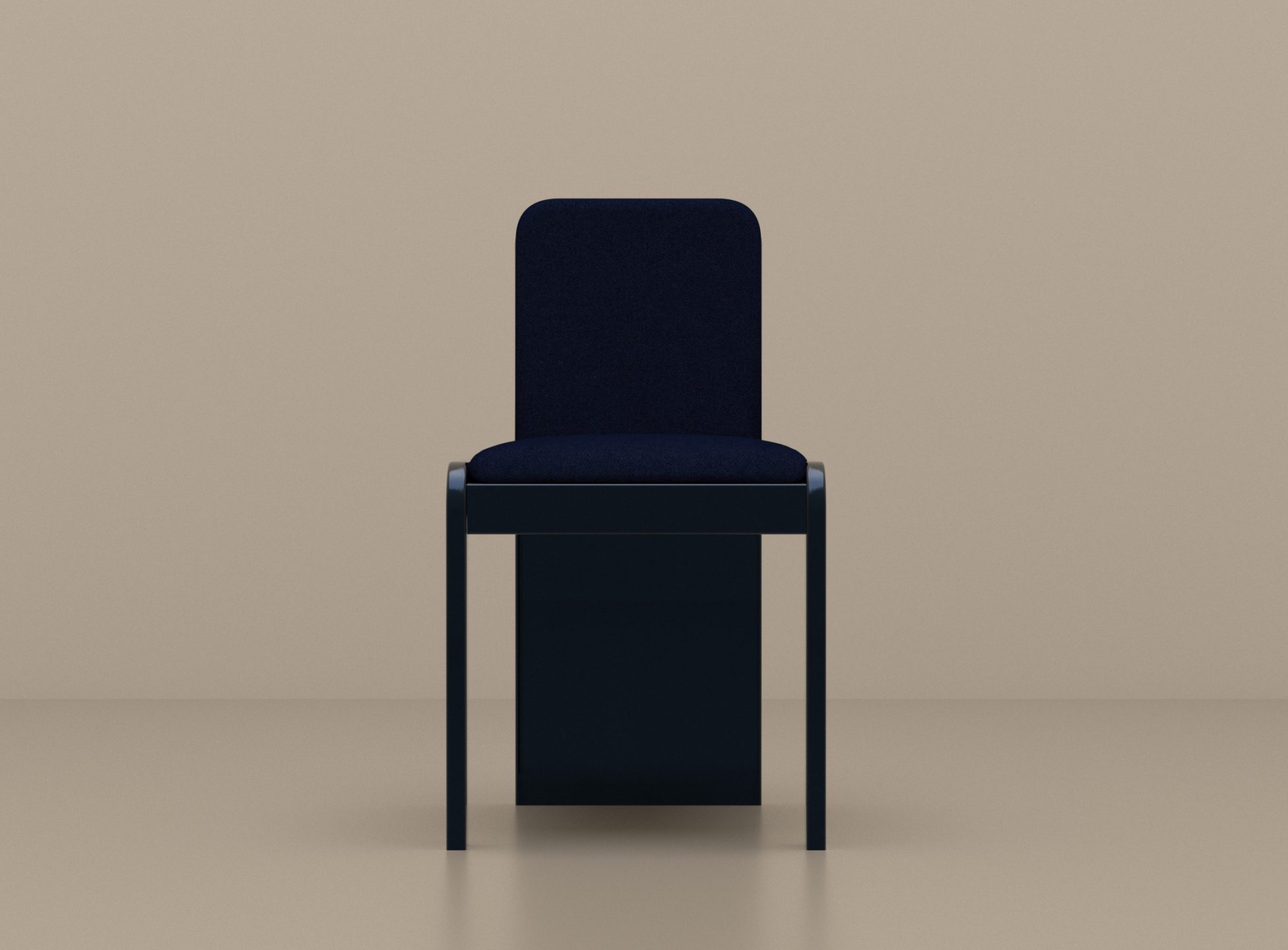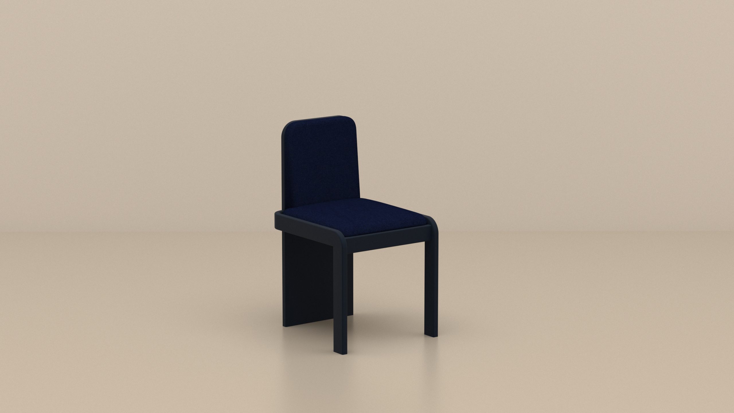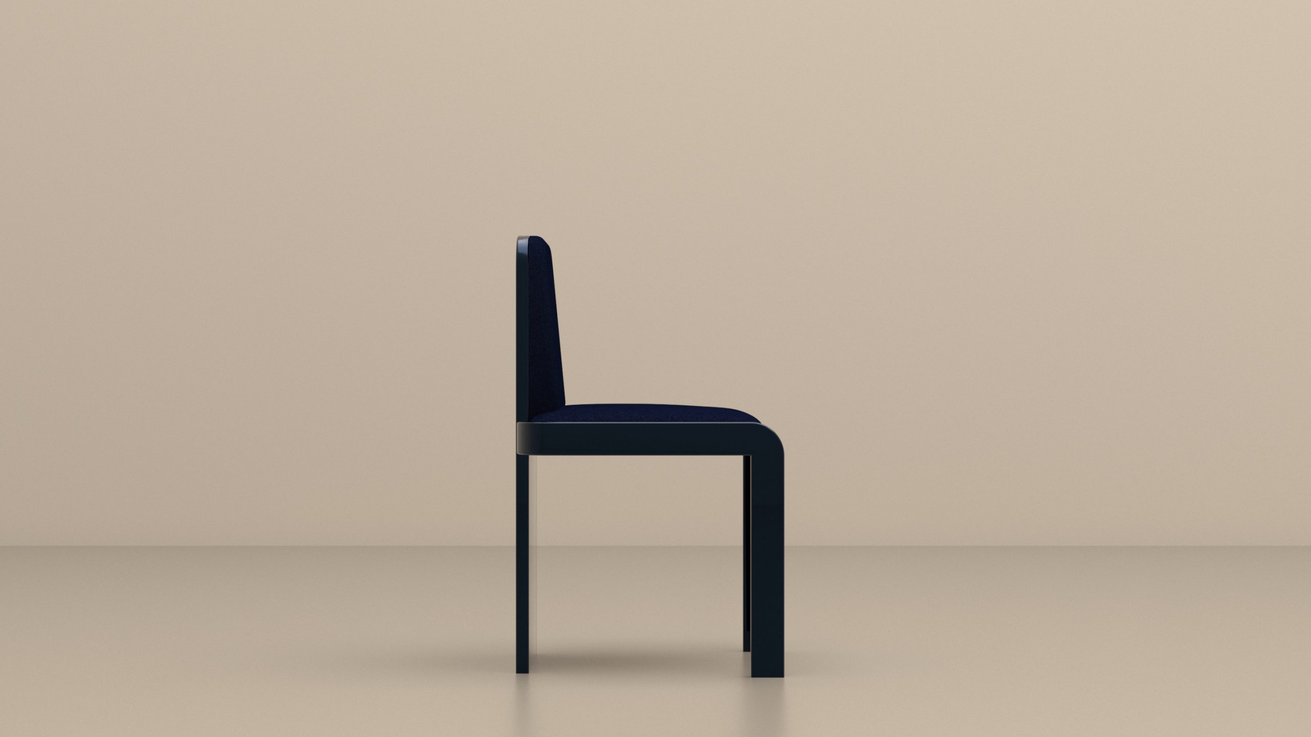 TOTEM 01 : structure en bois laqué Beu Nuit, assise et dossier tapissés mousse haute densité et drap de laine coordonné.