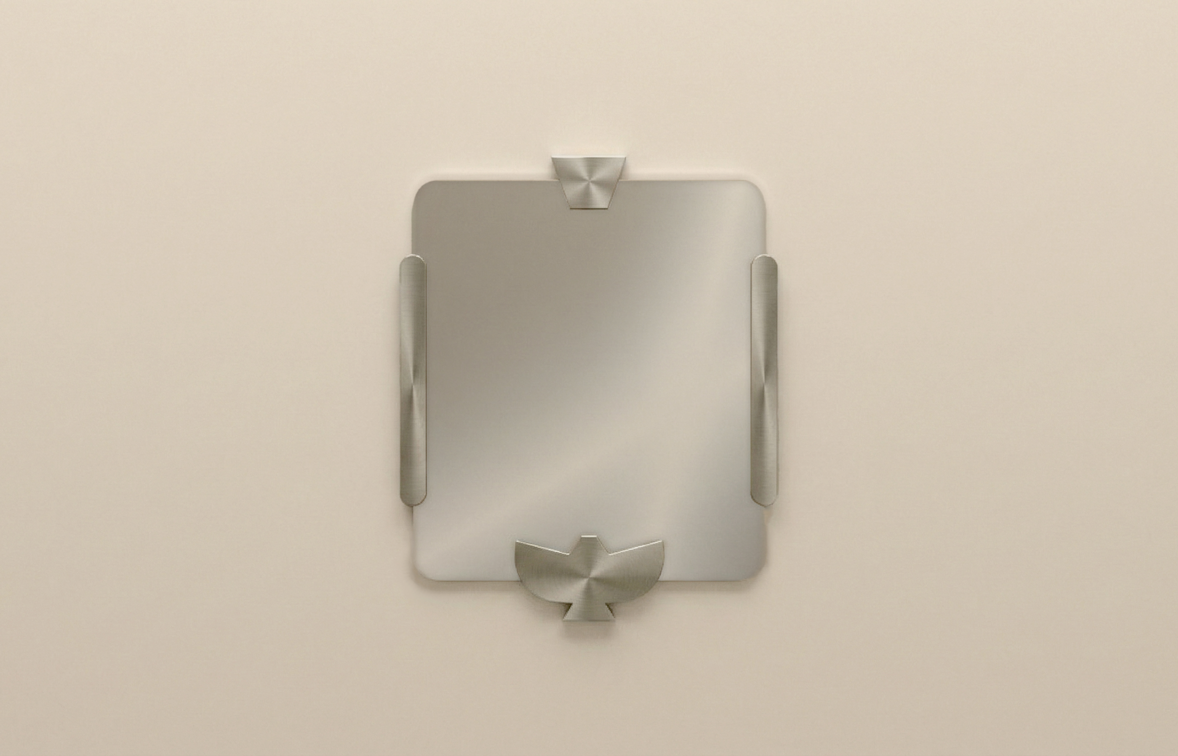 Pensé comme un grand miroir-totem avec ses pièces d’accroche sculpturales en inox ou bois précieux, ZIA rythme l’espace et capte le regard.