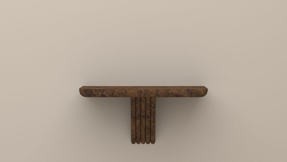 Console d’entrée, table de chevet, étagère d’appoint, Gigina est une tablette en loupe de noyer naturelle ou fumée qui se fixe facilement sur tout type de mur.