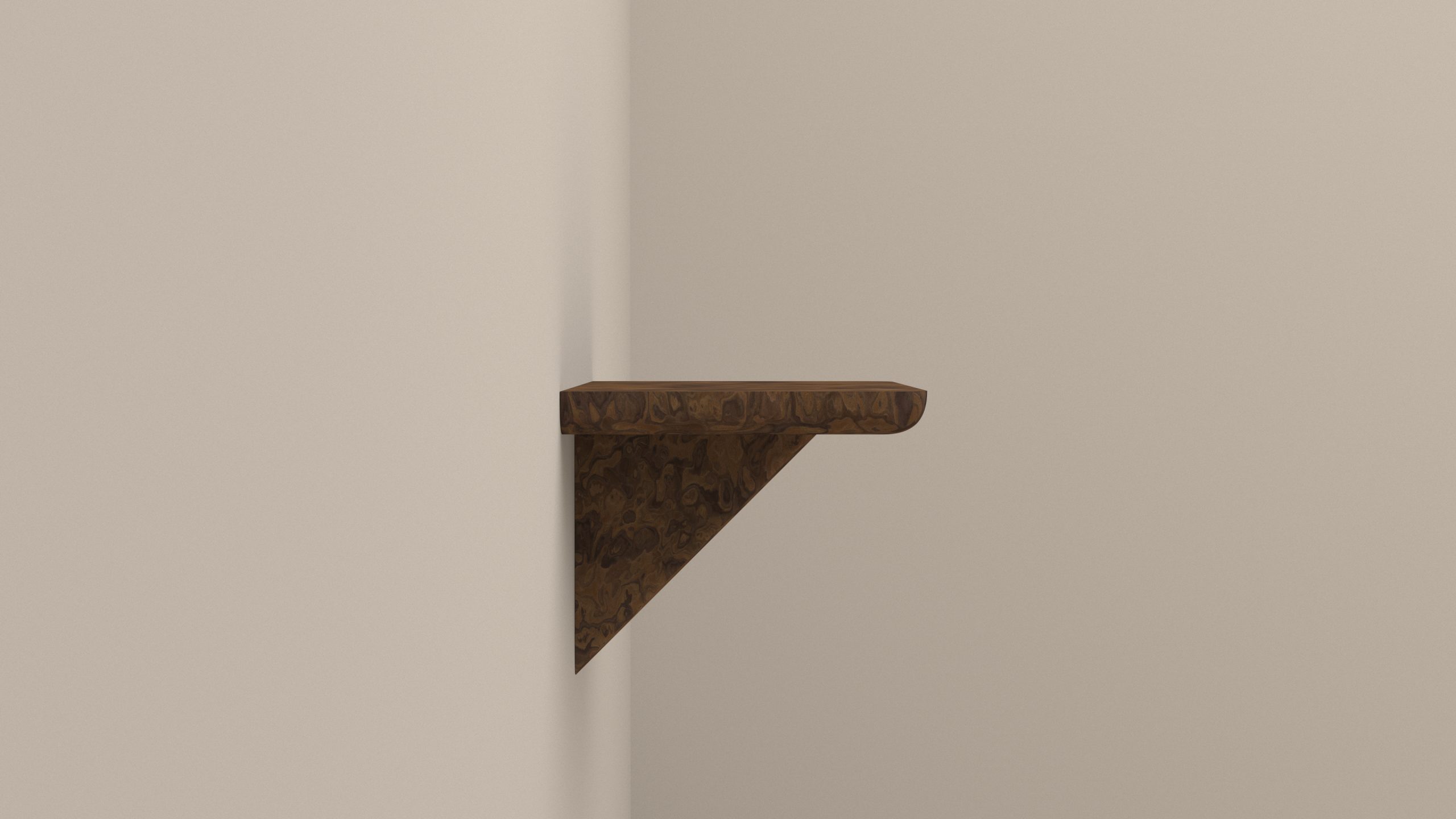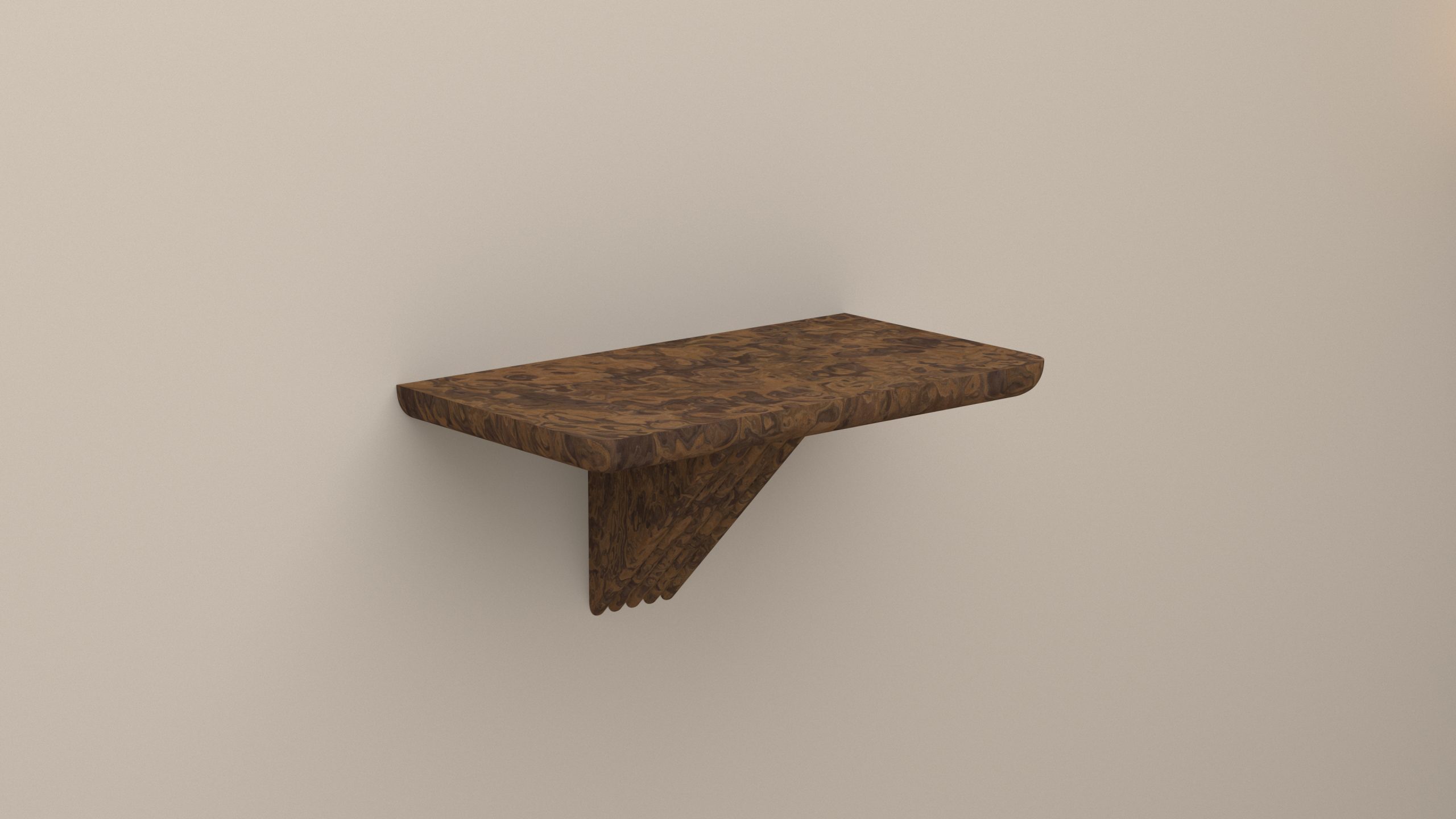 Console d’entrée, table de chevet, étagère d’appoint, Gigina est une tablette en loupe de noyer naturelle ou fumée qui se fixe facilement sur tout type de mur.