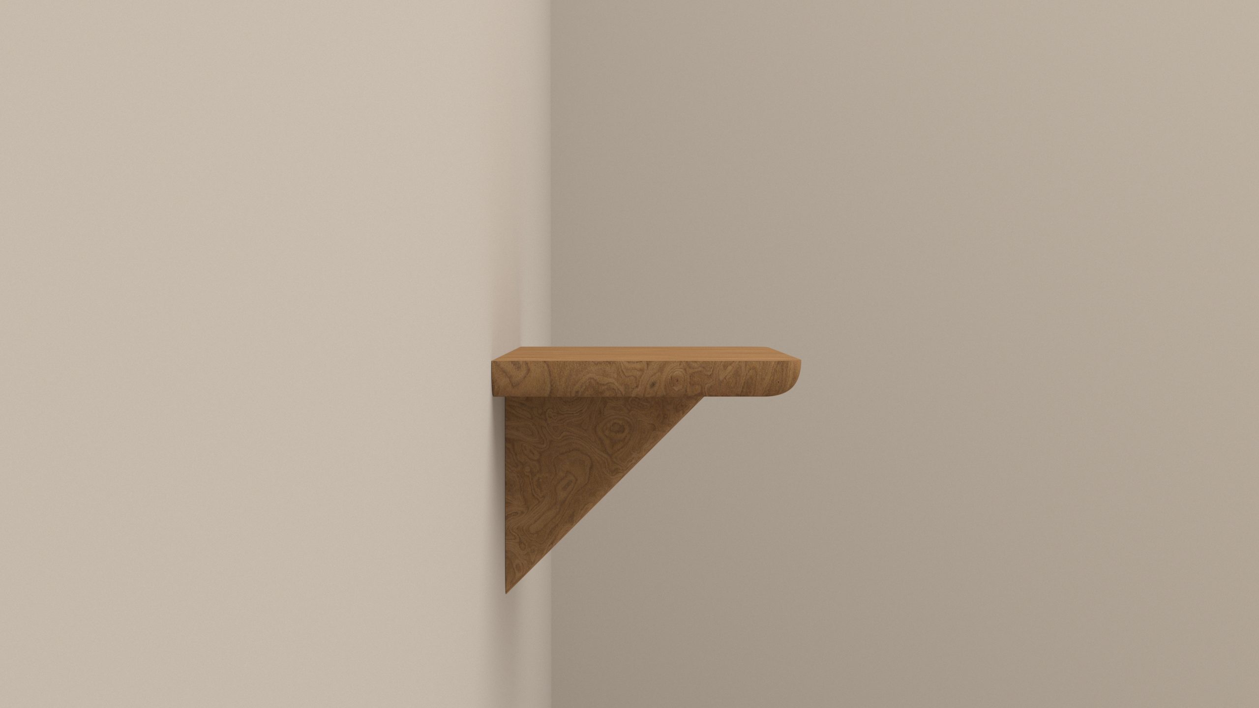 Console d’entrée, table de chevet, étagère d’appoint, Gigina est une tablette en loupe de noyer naturelle ou fumée qui se fixe facilement sur tout type de mur.