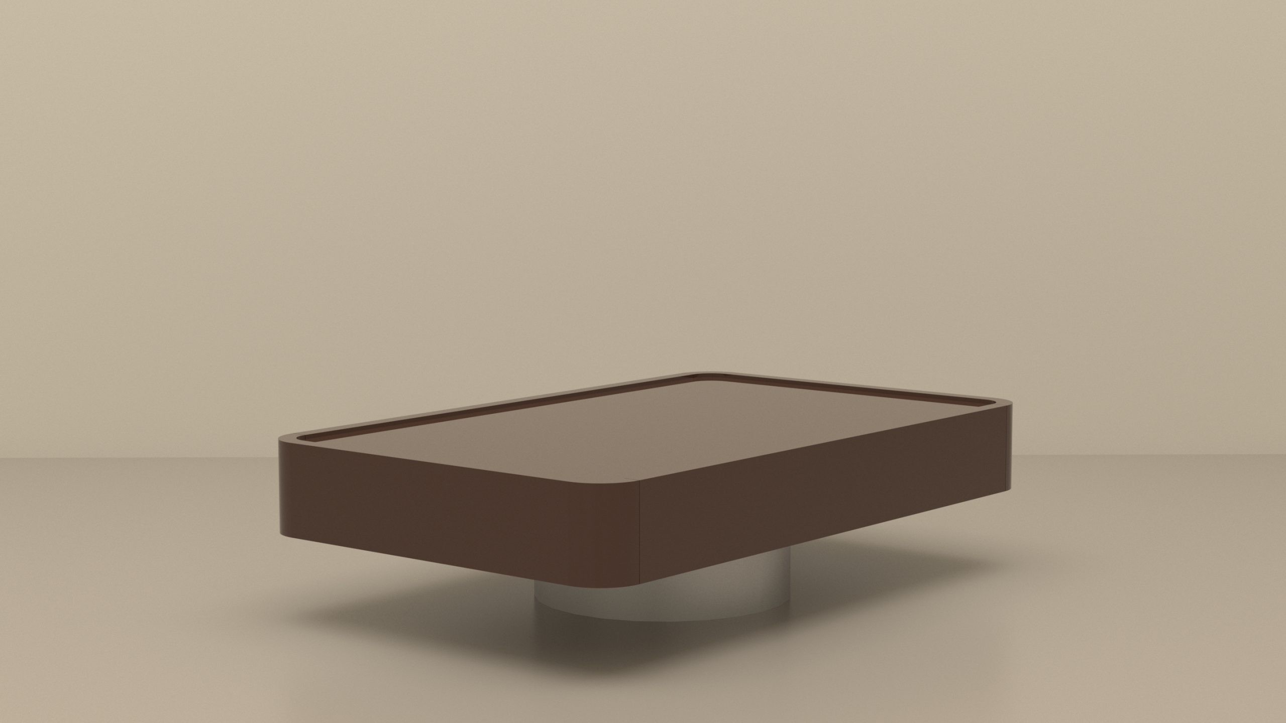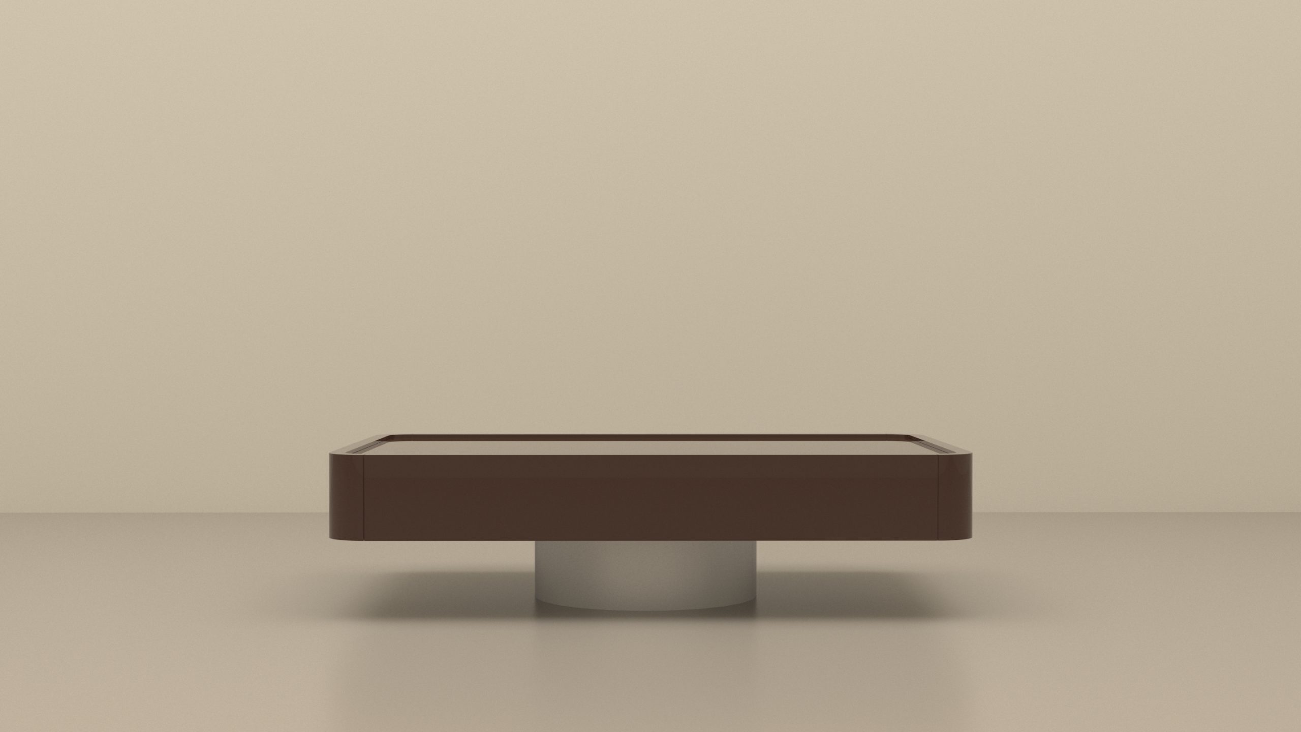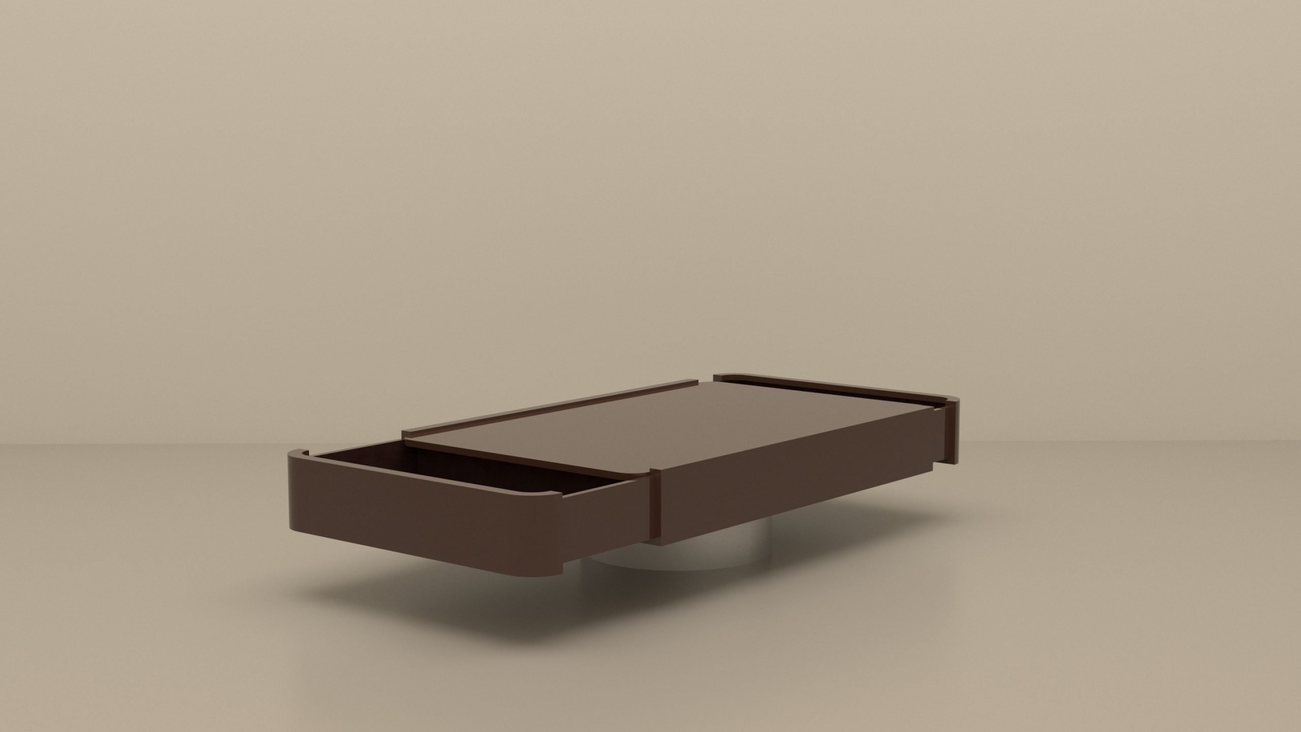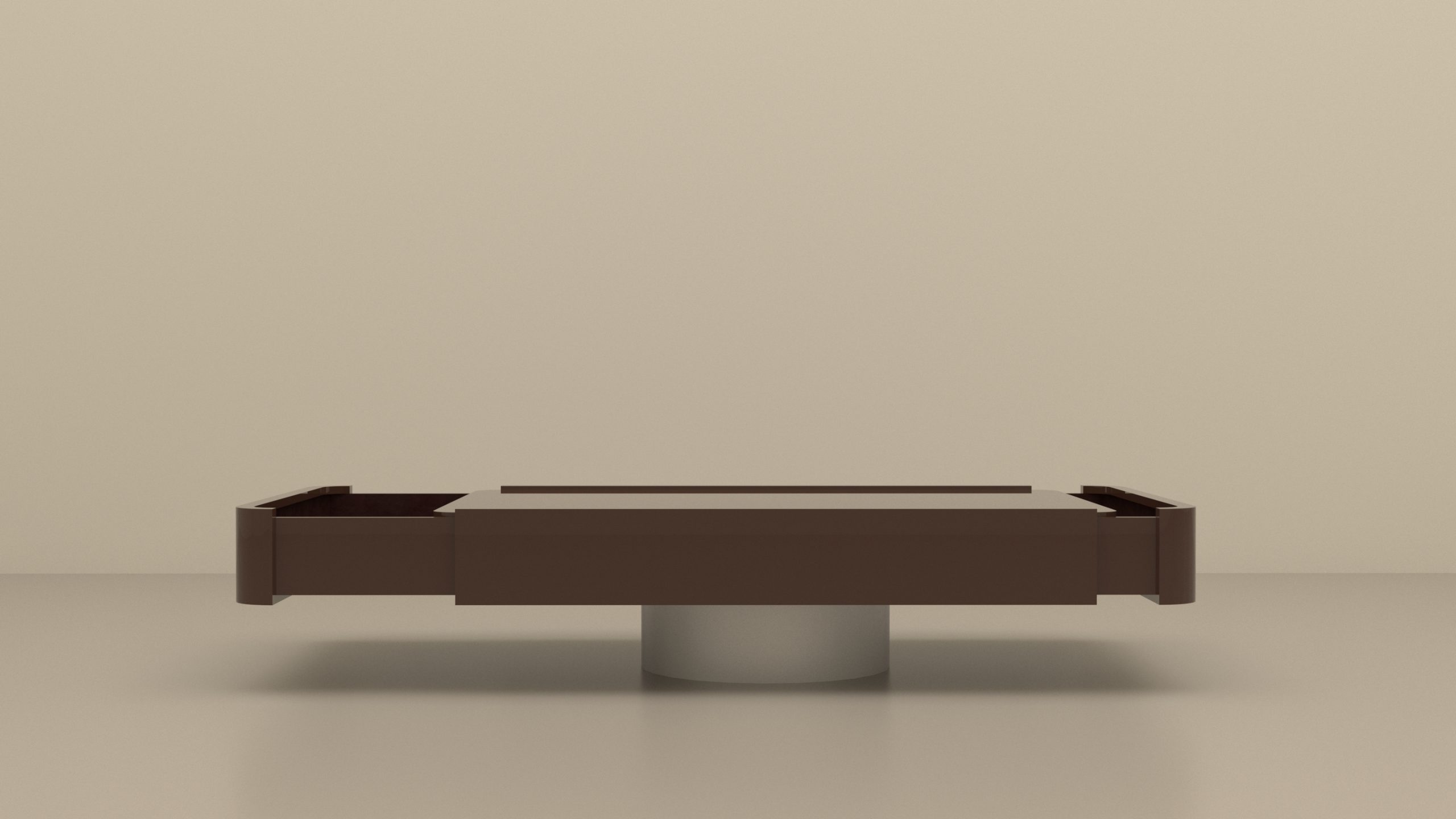 Table basse double tiroirs en bois laqué Chocolat et piètement inox.