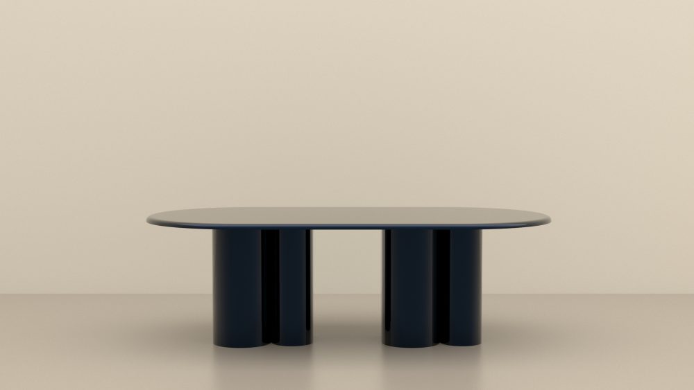 BOLD 01 : piètement et plateau en bois laqué Beu Nuit.