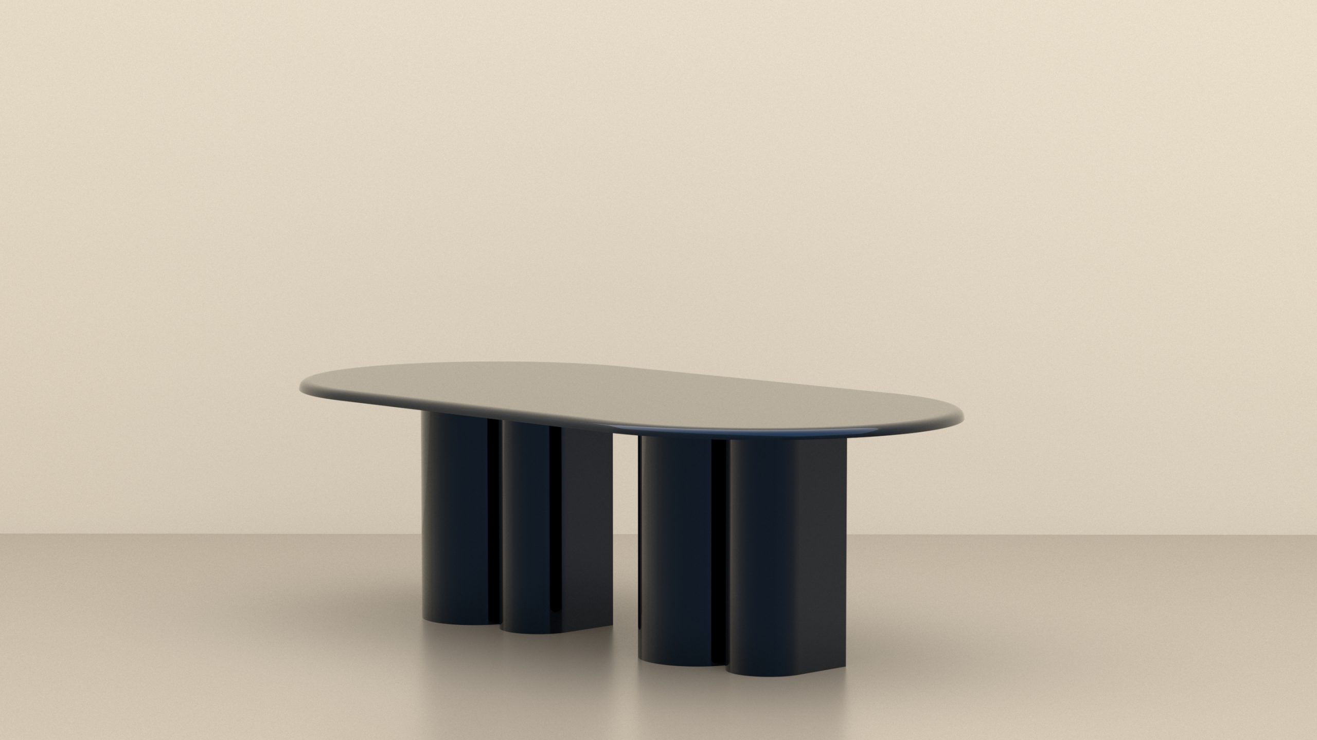 BOLD 01 : piètement et plateau en bois laqué Beu Nuit.