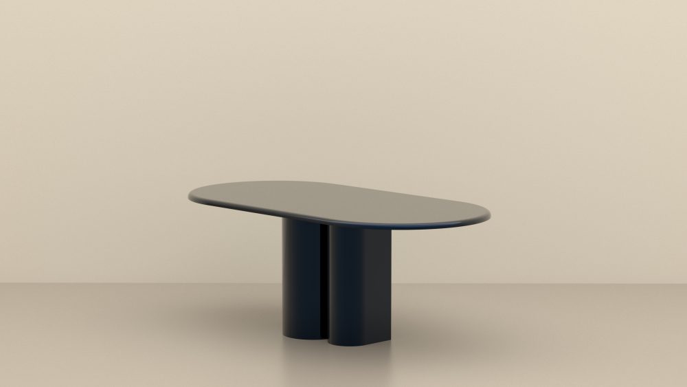 BOLD 01 : piètement et plateau en bois laqué Beu Nuit.