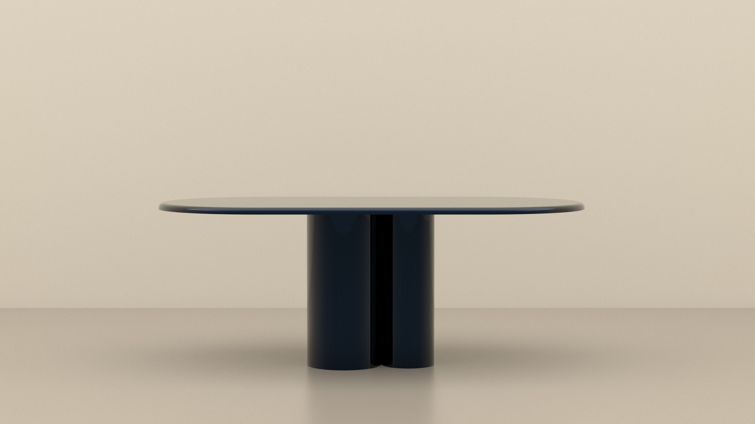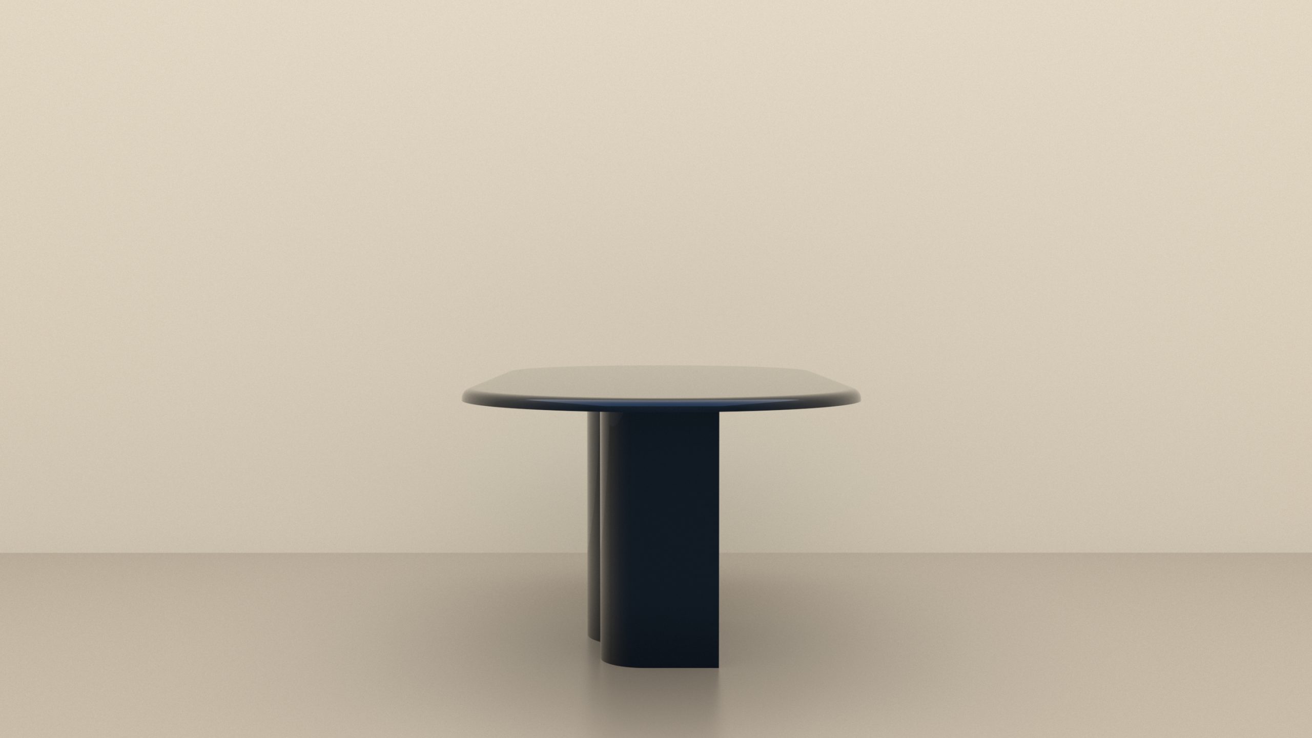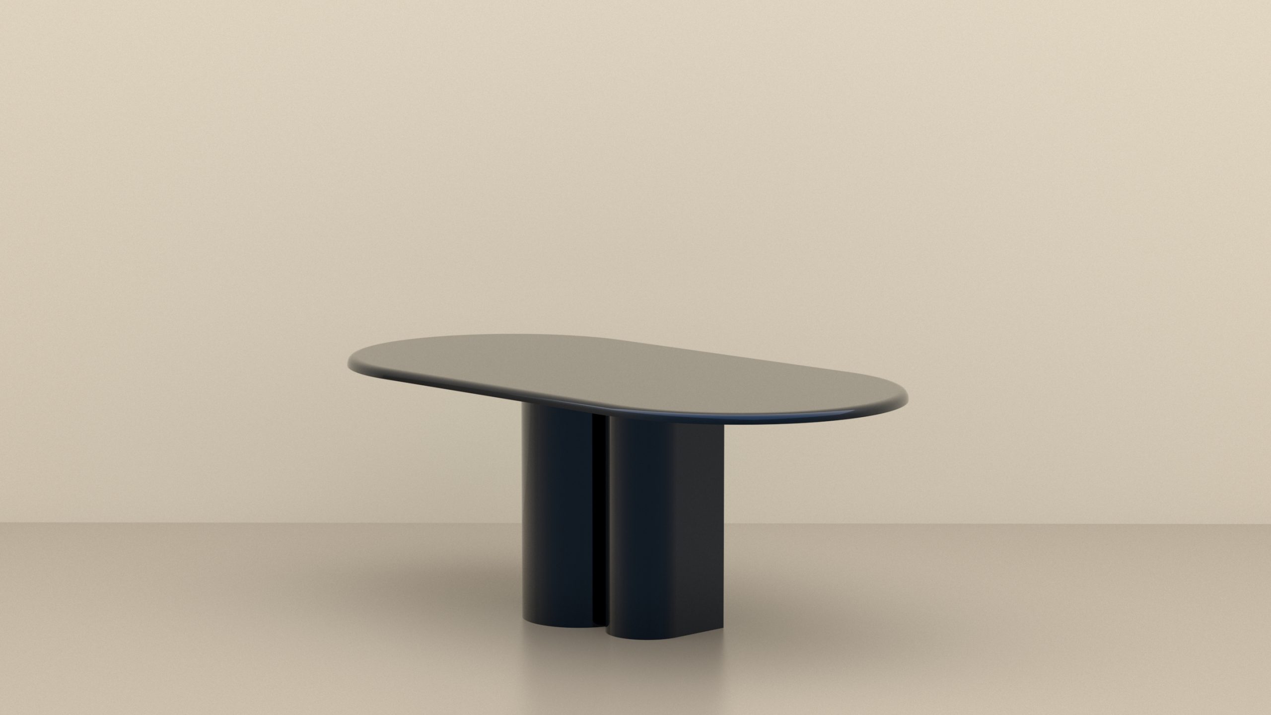 Table de salle à manger oblongue BOLD medium. Piètement et plateau en bois laqué Beu Nuit.