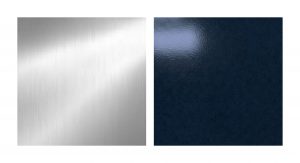 BOLD 05 : piètement métal inox, plateau en pierre de lave émaillée Bleu Nuit.