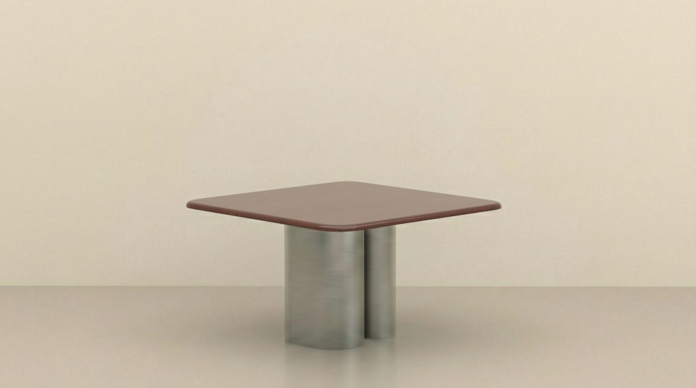 Table de salle à manger BOLD square en bois laqué Chocolat et piètement aluminium façon inox brossé.